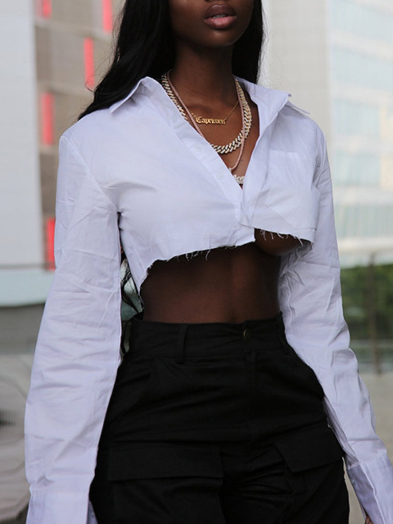 The Crop Top Raw Edge Blouse F4138 is a sensational customer favorite, and we hope you like it just as much.