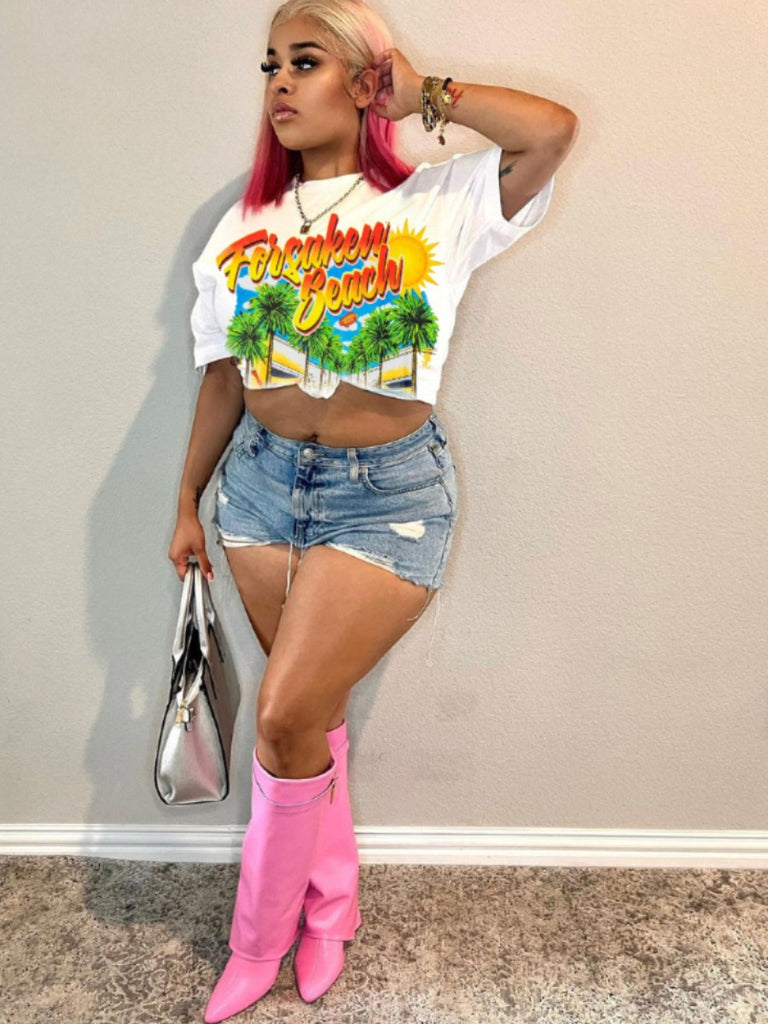 The Gradient Palm Tree Letter Print T-shirt AR5036 is far and away, one of our most popular items. People can't seem to get enough of it.