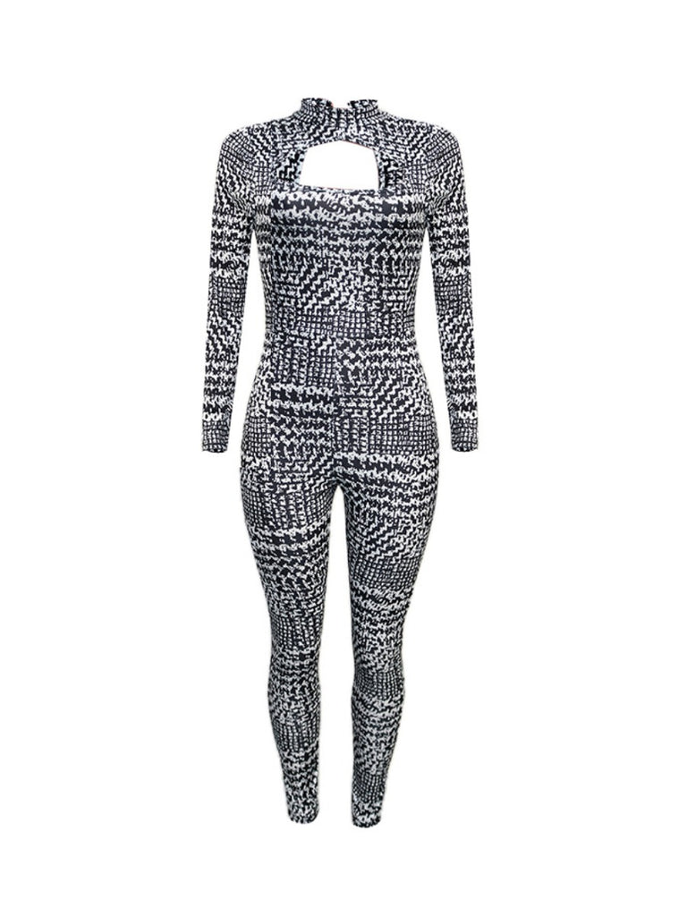 Houndstooth Cut Out Skinny Jumpsuit BO2152