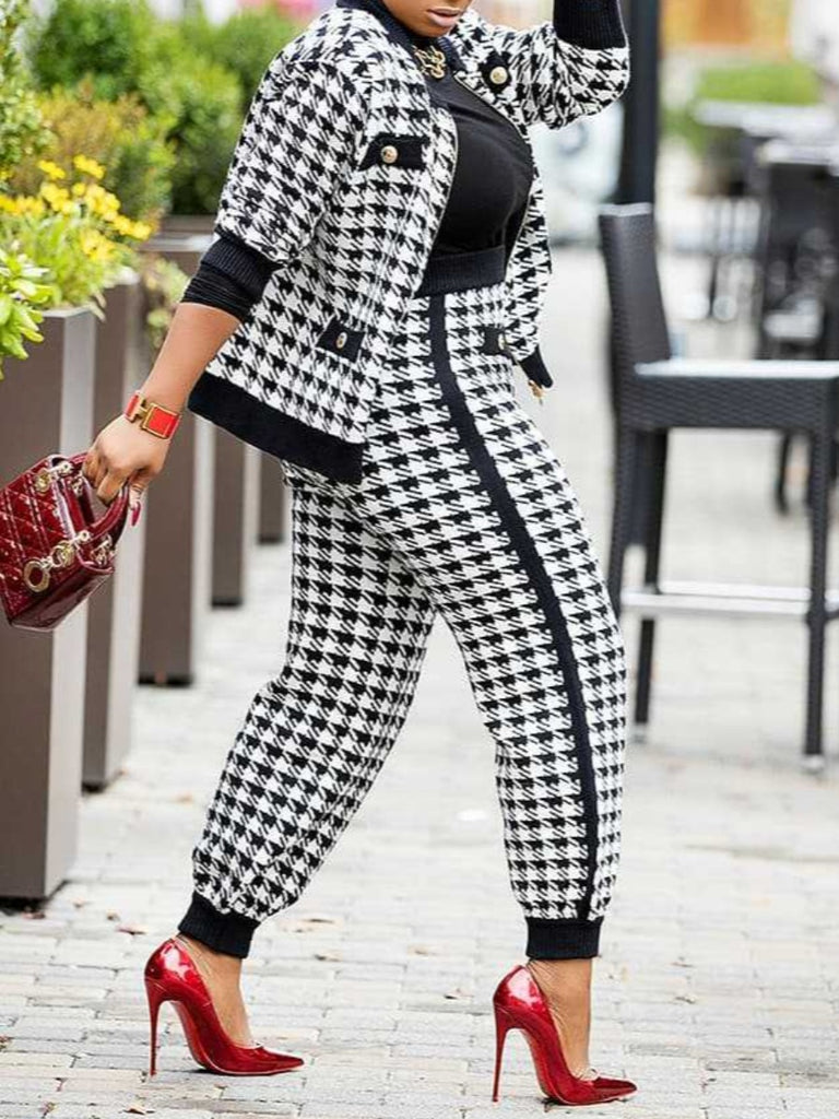 On the fence about this Houndstooth Pocket Design Pants Set AR7075? Don't be. Let our satisfaction guarantee address your concerns.