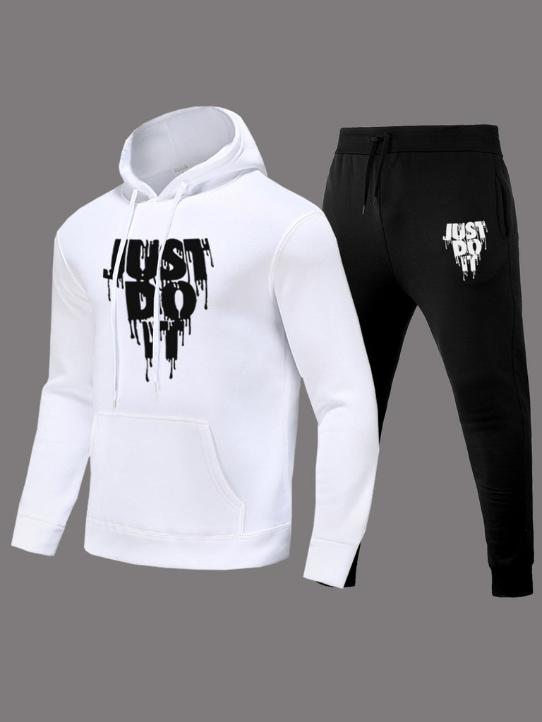 Just Do It Letter Print Kangaroo Pocket Print Hoodie AR501