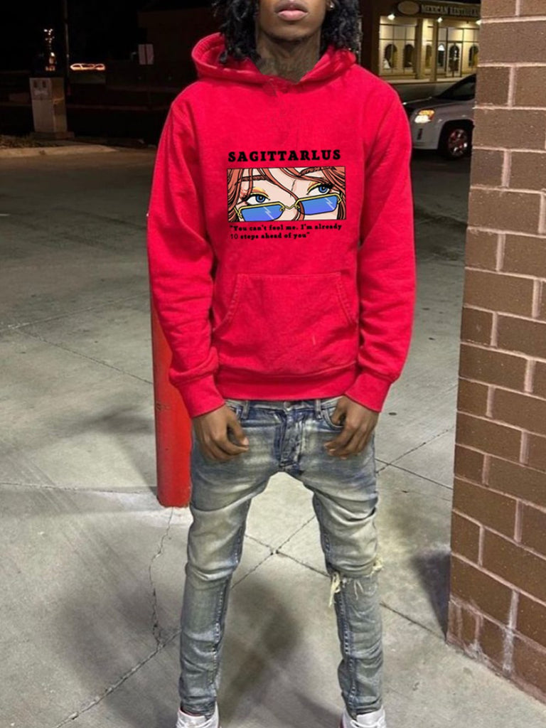 Men Cartoon Letter Print Kangaroo Pocket Hoodie BO5036