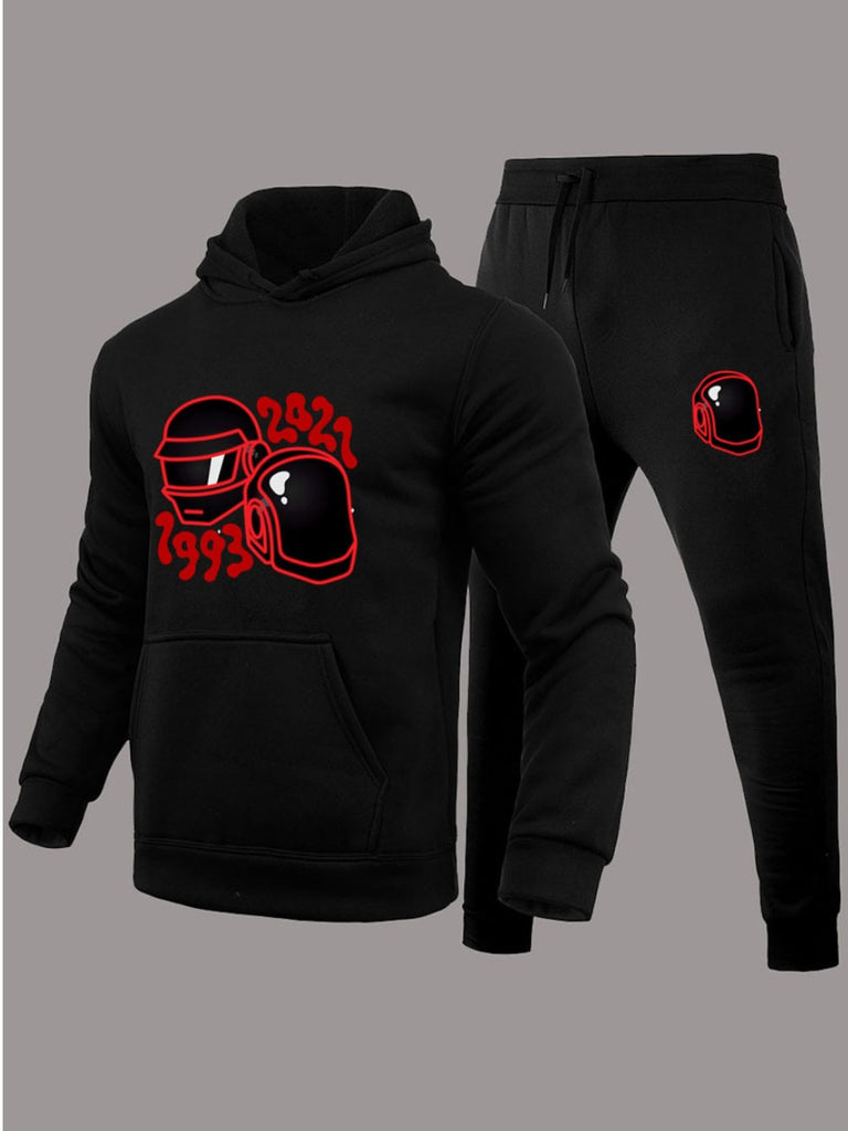 Men Figure Letter Print Kangaroo Pocket Tracksuit Set BO300