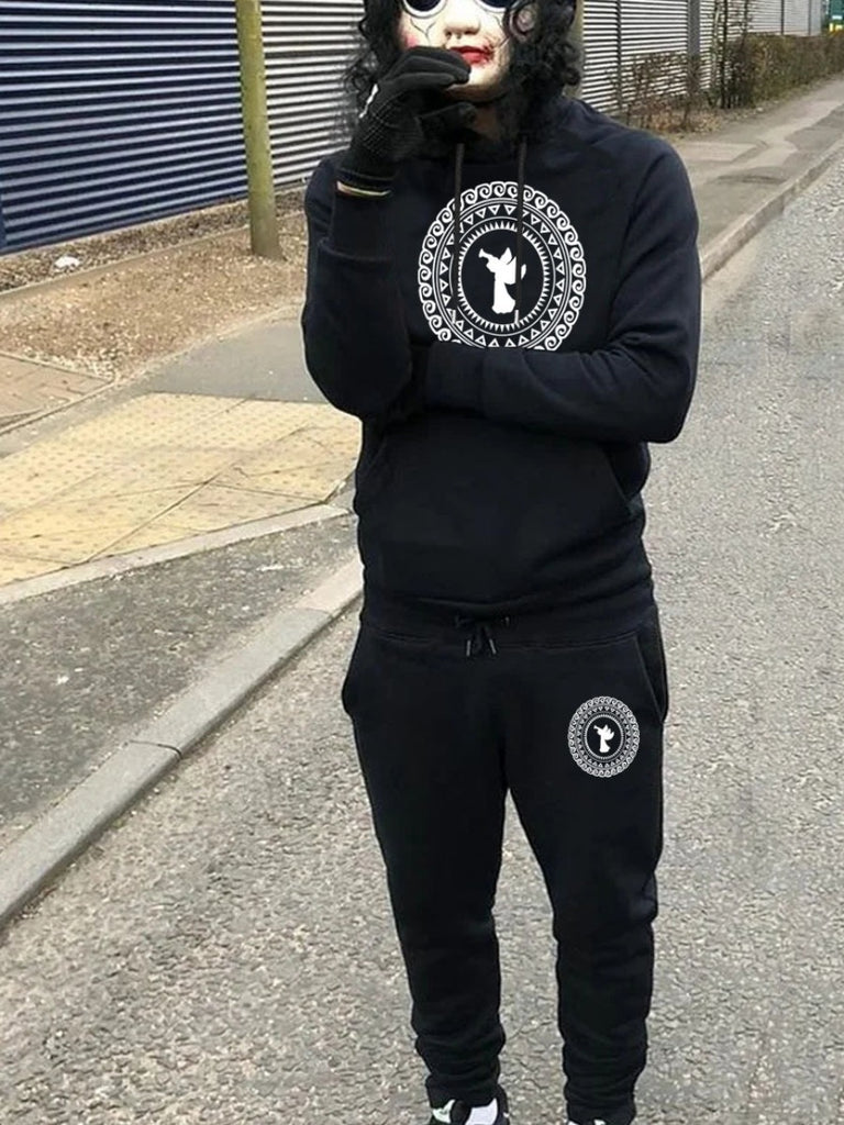 Men Geometric Print Kangaroo Pocket Tracksuit Set BO50110