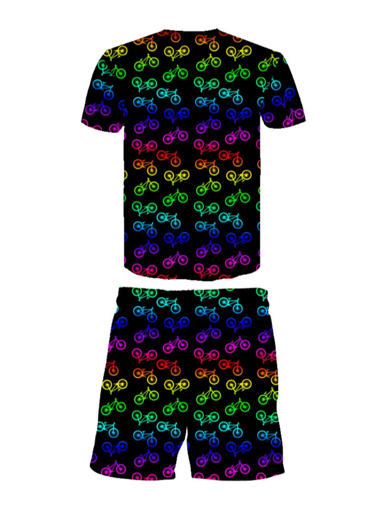 Product Title :Men Gradient Bicycle Print Shorts Set