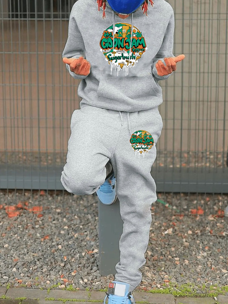 Men Letter Print Kangaroo Pocket Tracksuit Set F4108