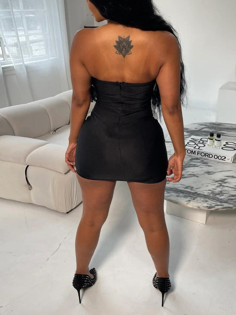 Life is too short to live without the Off The Shoulder Feather Decor Rhinestone See Through Dress AT9023. Be happy. Be Content. Be Satisfied.
