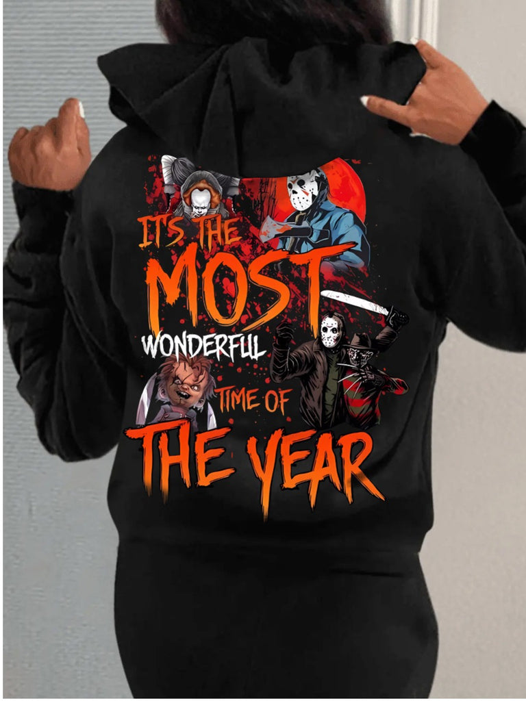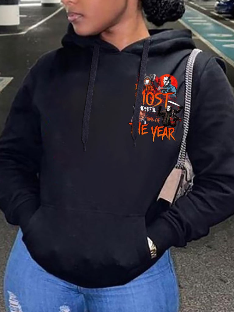 Product Title :Pattern Kangaroo Pocket Print Letter Loose Hoodie