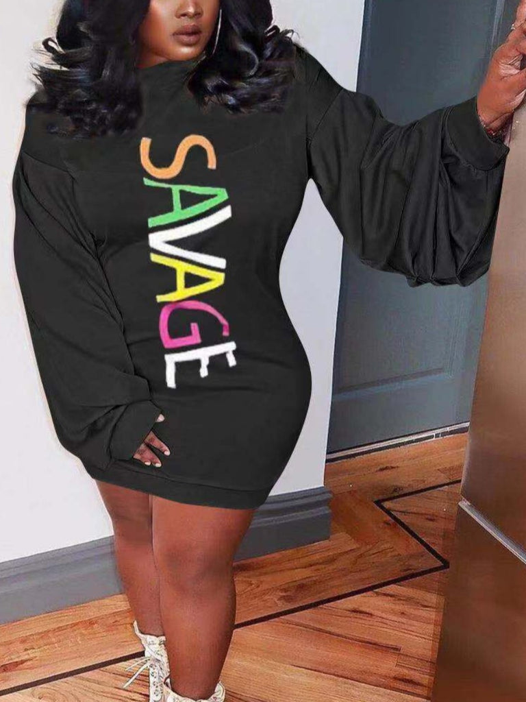 Product Title :Pattern Print Letter Long Sleeve Mini Dress