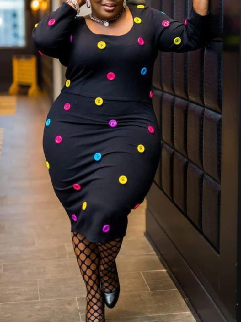 Product Title :Plus Size Button Design Bodycon Dress