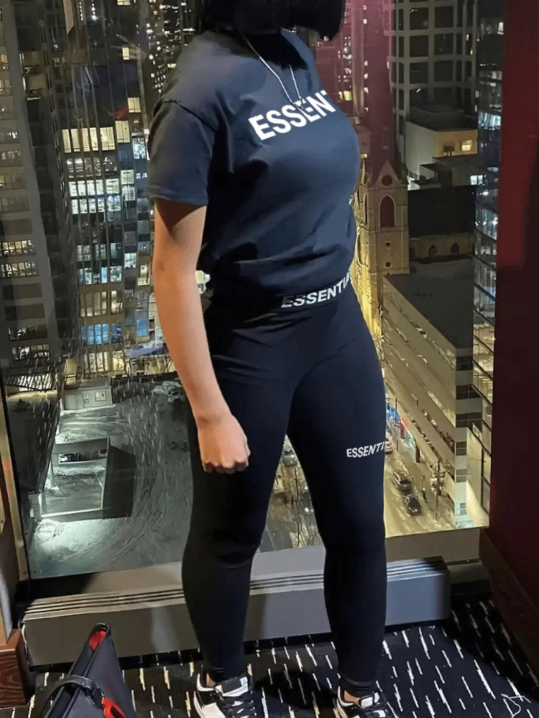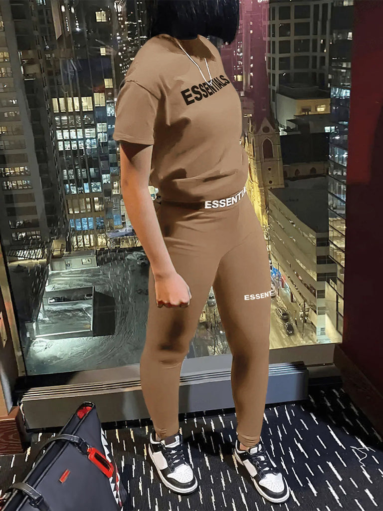 Product Title :Plus Size Essentials Letter Print Pocket Design Pants Set