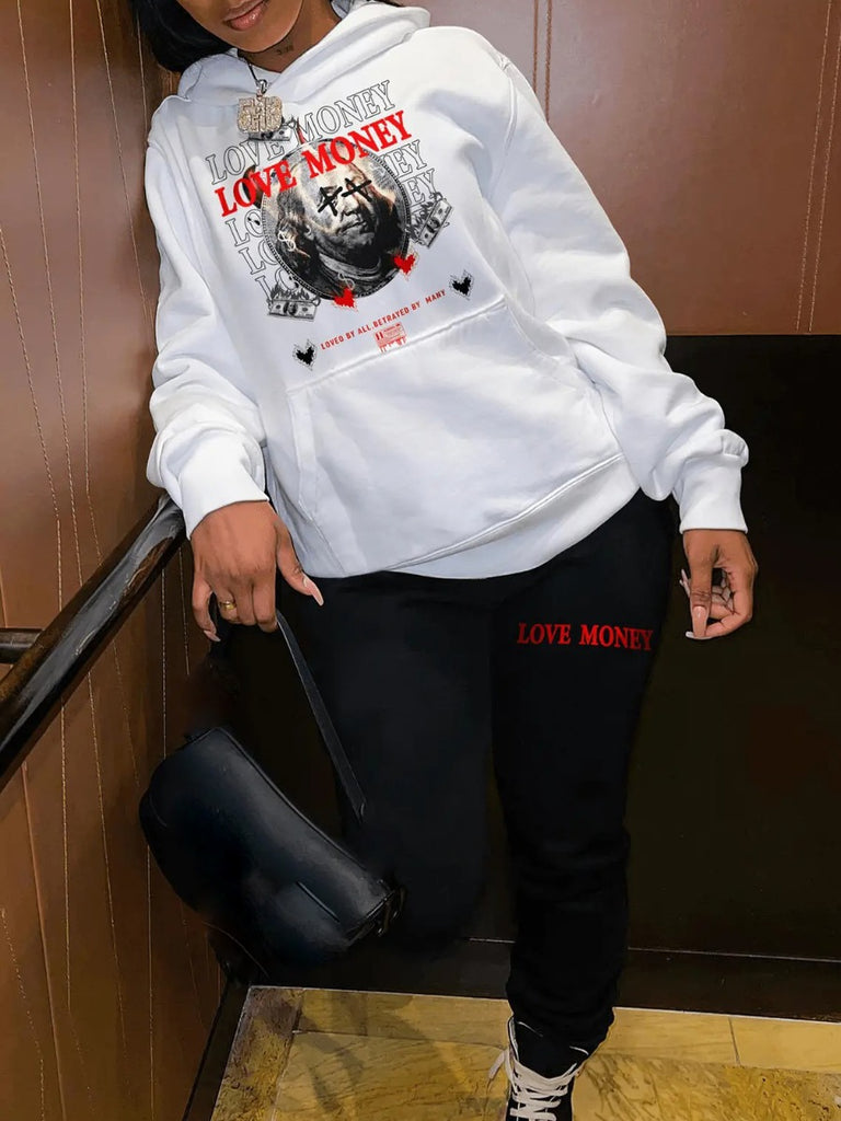 Product Title :Plus Size Figure Letter Print Kangaroo Pocket Tracksuit Set