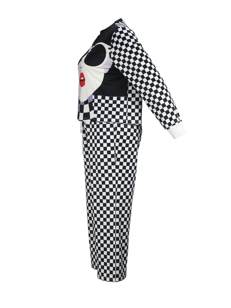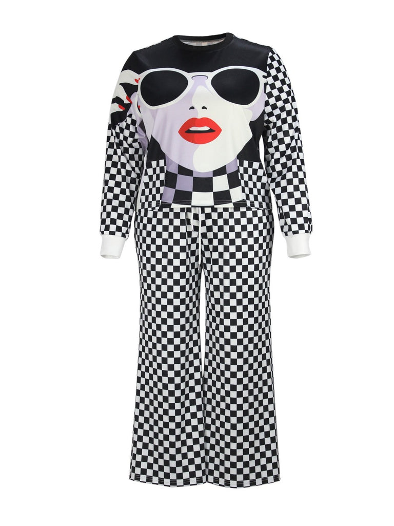Plus Size Figure Plaid Print Wide Leg Pants Set AT9030