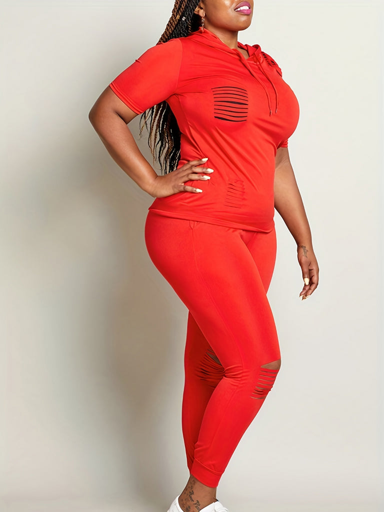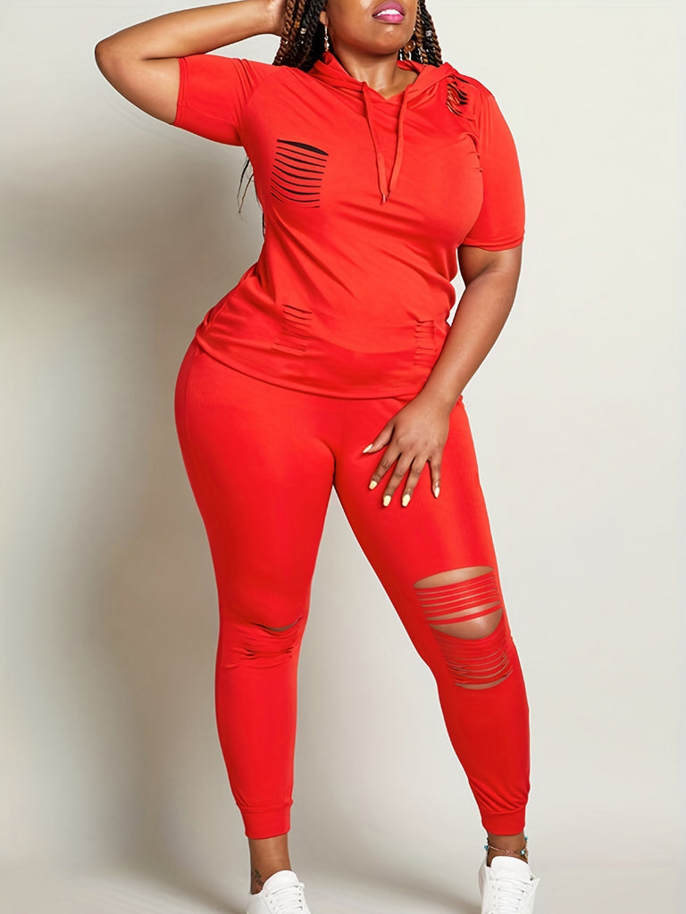 Product Title :Plus Size Hooded Collar Ripped Pants Set