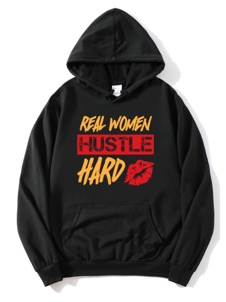 Life is too short to live without the Plus Size Hustle Hard Lip Letter Print Kangaroo Pocket Tracksuit Set AR5015. Be happy. Be Content. Be Satisfied.