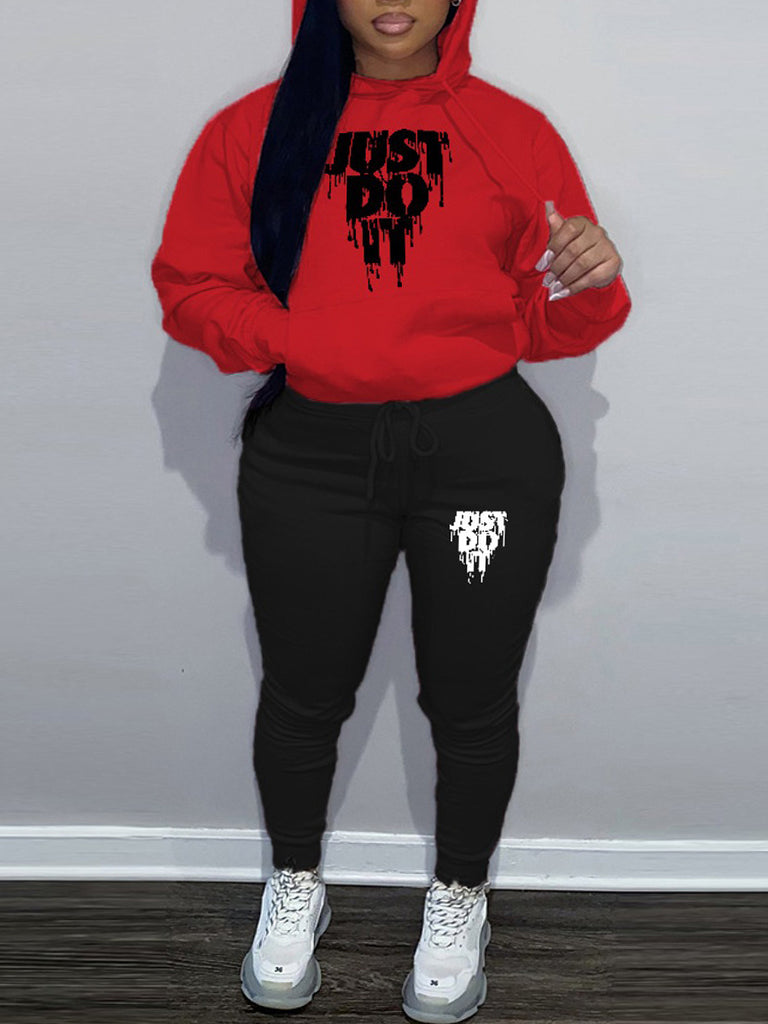 Product Title :Plus Size Just Do It Letter Print Kangaroo Pocket Tracksuit Set