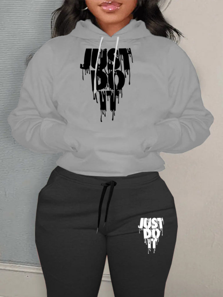 Product Title :Plus Size Just Do It Letter Print Kangaroo Pocket Tracksuit Set