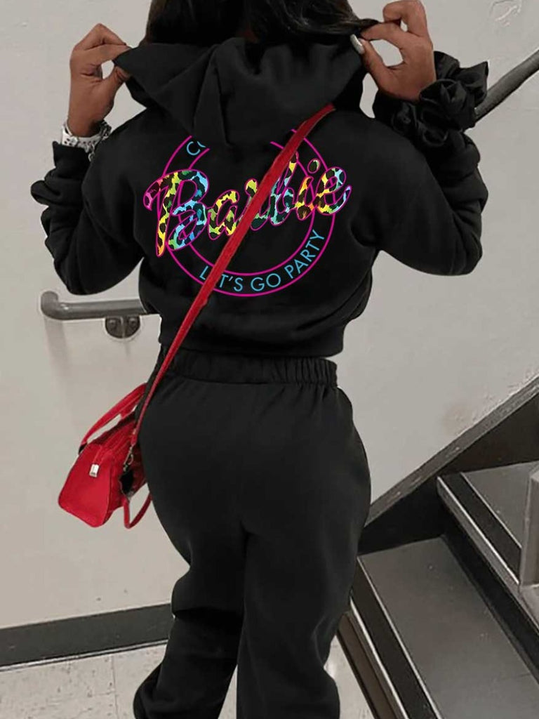 Plus Size Letter Print Kangaroo Pocket Hoodie BO2172