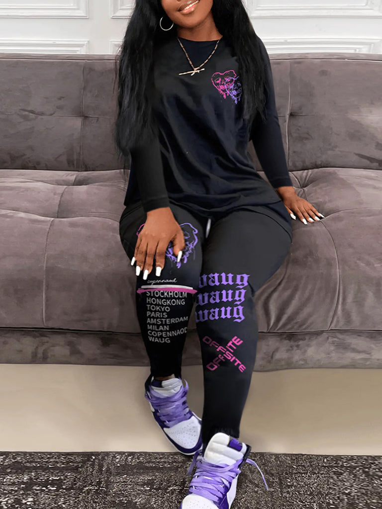Product Title :Plus Size Letter Print Zipper Design Skinny Jumpsuit