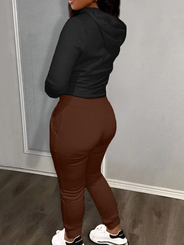 Product Title :Plus Size Lip Letter Print Kangaroo Pocket Tracksuit Set