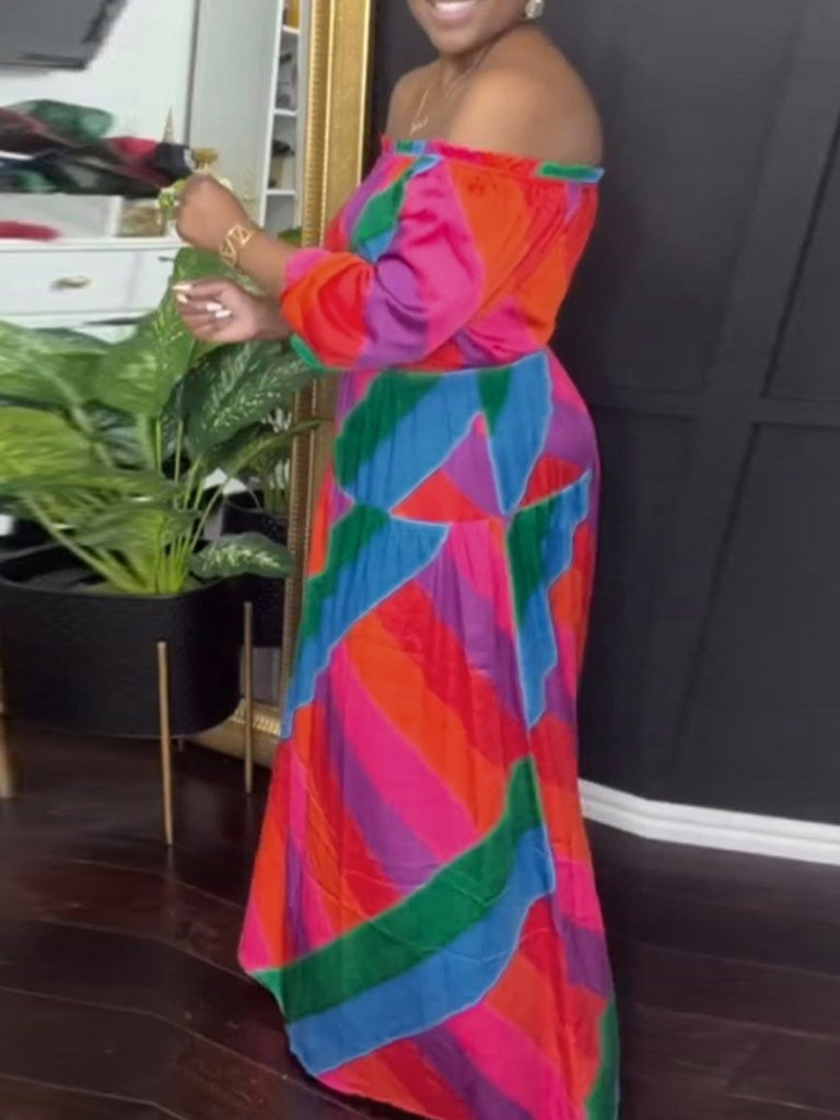 Product Title :Plus Size Off The Shoulder Mixed Print Loose Dress