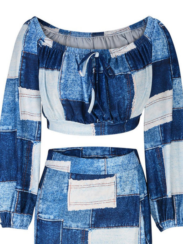 Plus Size Off The Shoulder Plaid Print Side Slit Skirt Set AR50138