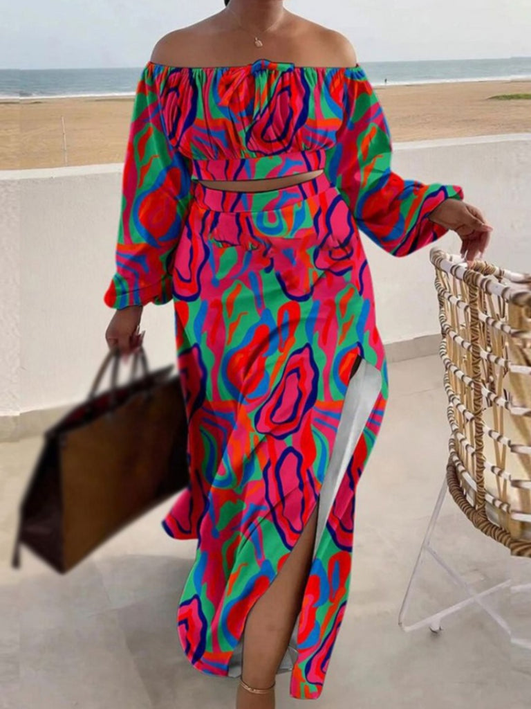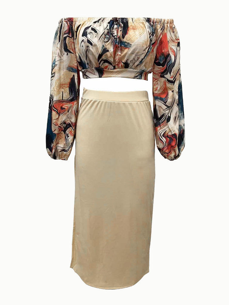 The Plus Size Off The Shoulder Plaid Print Side Slit Skirt Set AR50138 destined to impress, and priced at only $33.59, for a limited time.