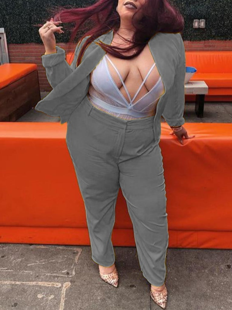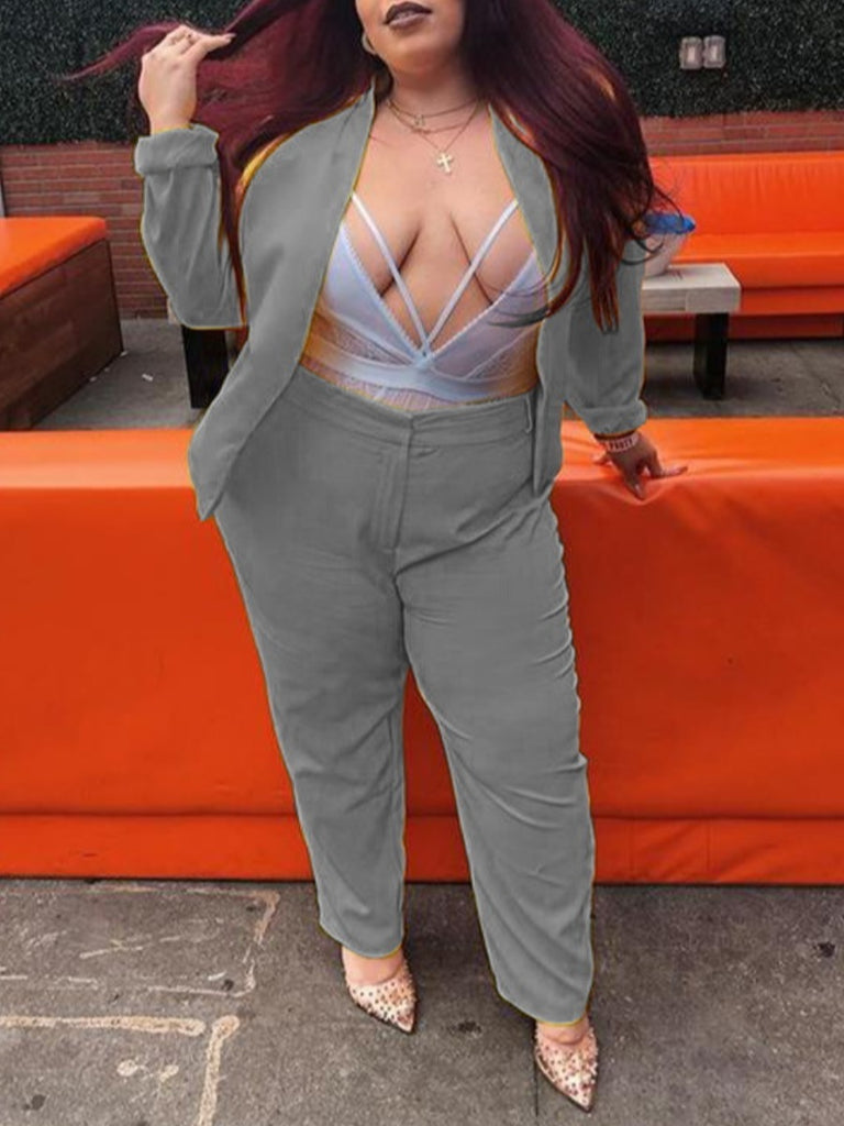 Plus Size Zipper Design Regular Fit Pants Set BO5033