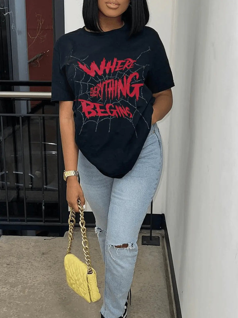 Product Title :Spider Web Letter Print T-shirt