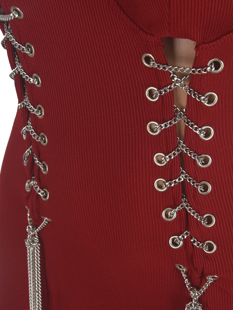 Product Title :SXY Off The Shoulder Chain Decor Cut Out Jumpsuit