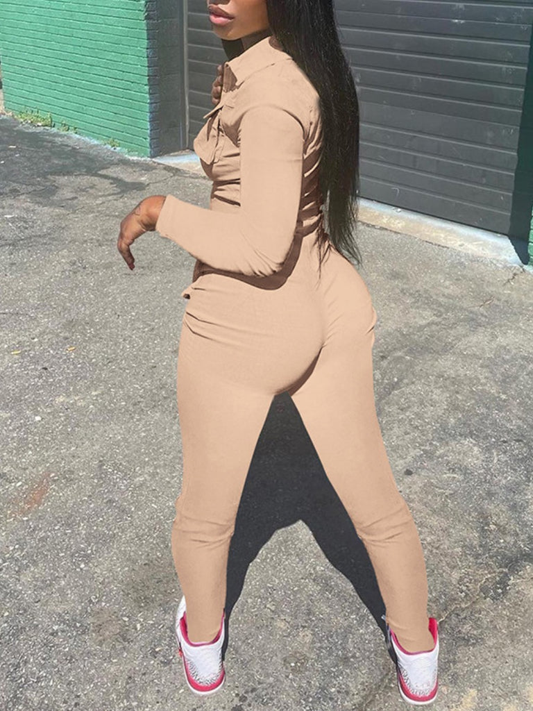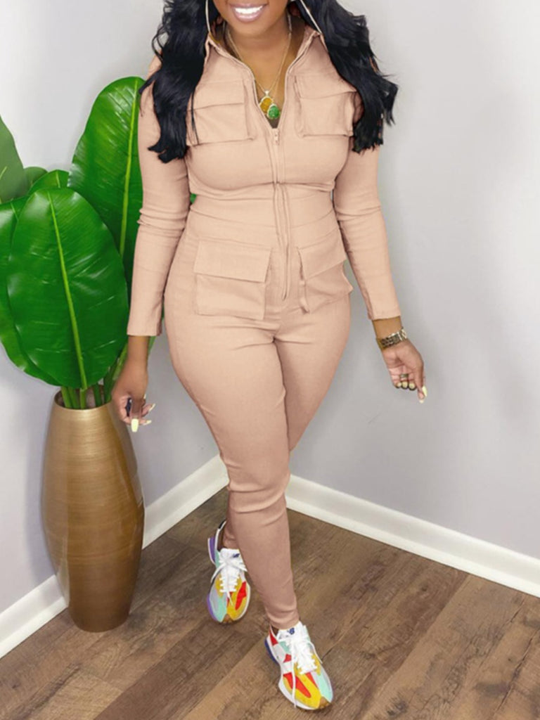 Zipper Pocket Design Skinny Jumpsuit AR8036