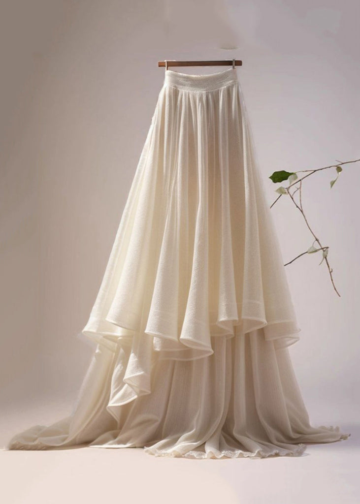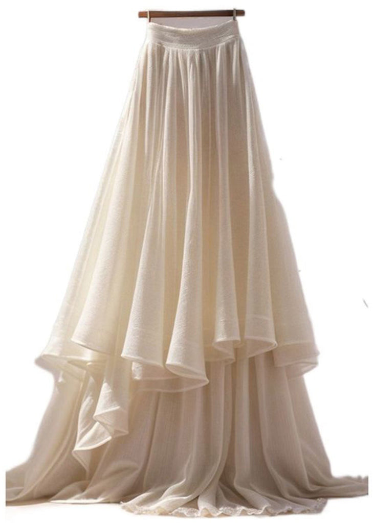 Women Apricot Solid Wrinkled Cotton Maxi Skirts Summer AB1015