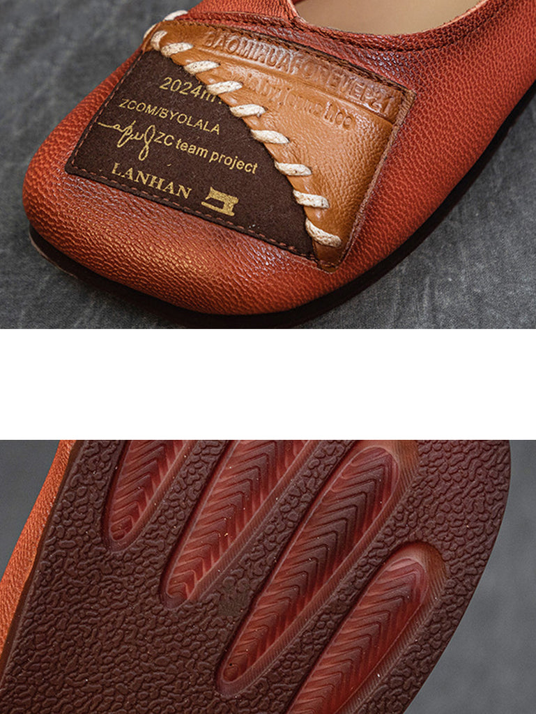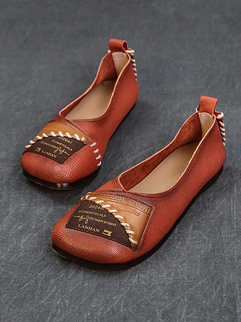Women Artsy Colorblock Soft Leather Flat Shoes KL1024