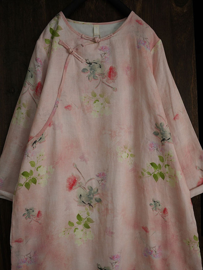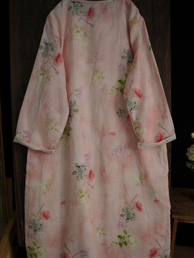Women Artsy Floral Summer Ramie Dual-Layer Dress PA1014