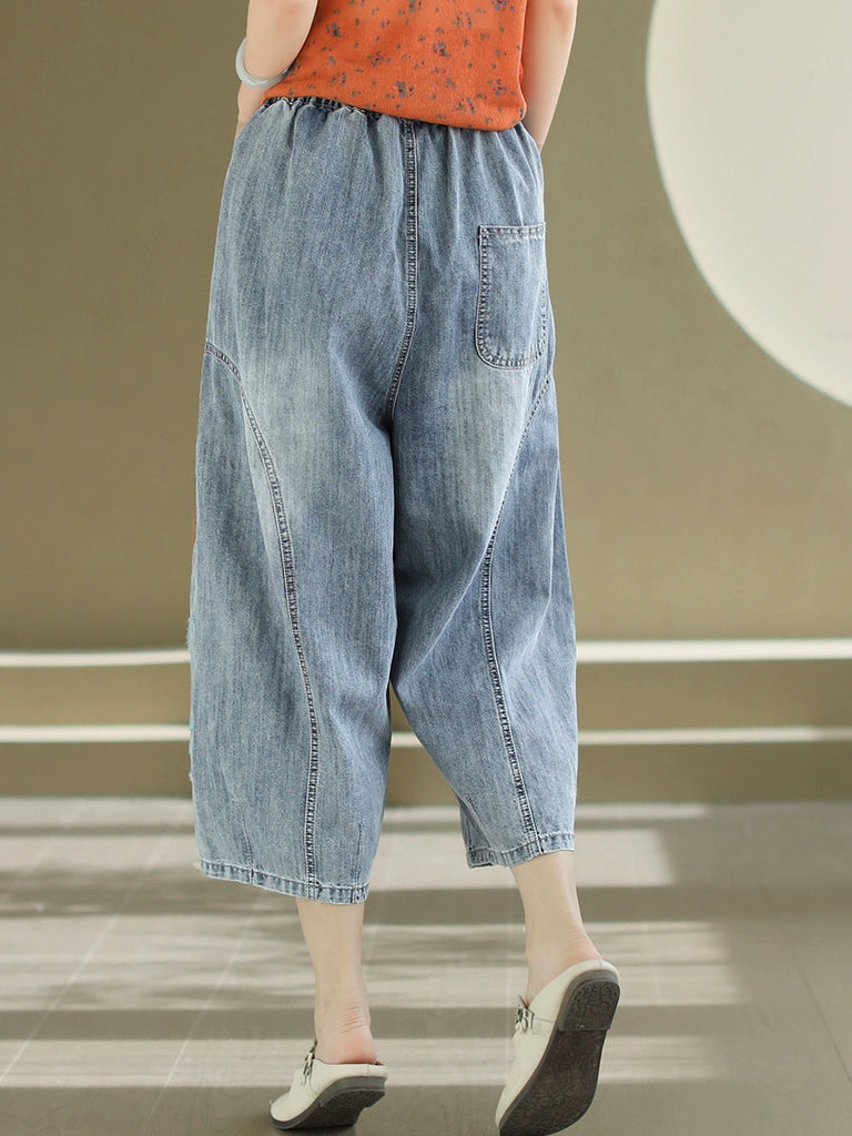 Women Artsy Flower Embroidery Denim Harem Pants AS1006