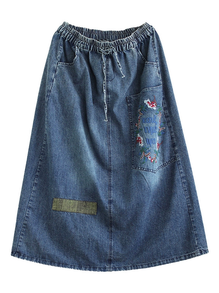 Women Artsy Flower Embroidery Denim Skirt PA1009