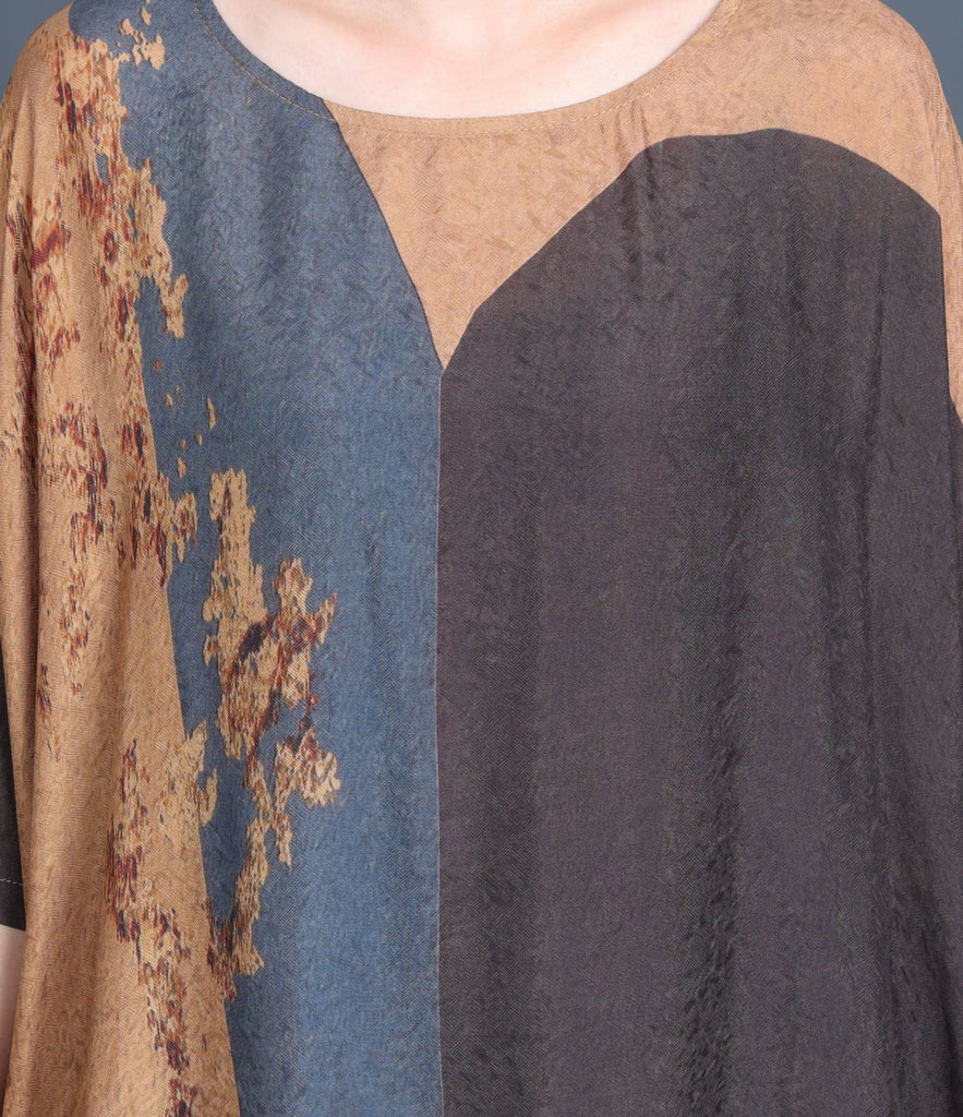 Indulge in the luxurious feel of 100% rayon with this Artsy Flower Spliced Loose Maxi Dress AA1003. Adorned with an elegant O-neck collar and a stunning flower pattern, this dress boasts raglan half sleeves and a maxi-length for a stylish look. Perfect for staying chic and cool during the summer season.