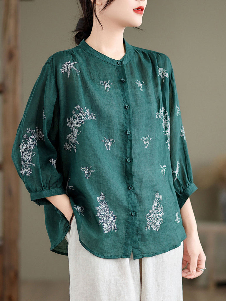 Embodying the essence of summer, the Artsy Flower Summer Blouse is expertly crafted from 100% ramie. It boasts an elegant O-Neck collar and flowing wrist-length sleeves. Featuring a breathtaking floral motif, this blouse is ideal for the warmer months of the year.