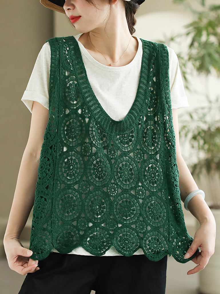 Women Artsy Knitted Cutout V-Neck Vest AS1046