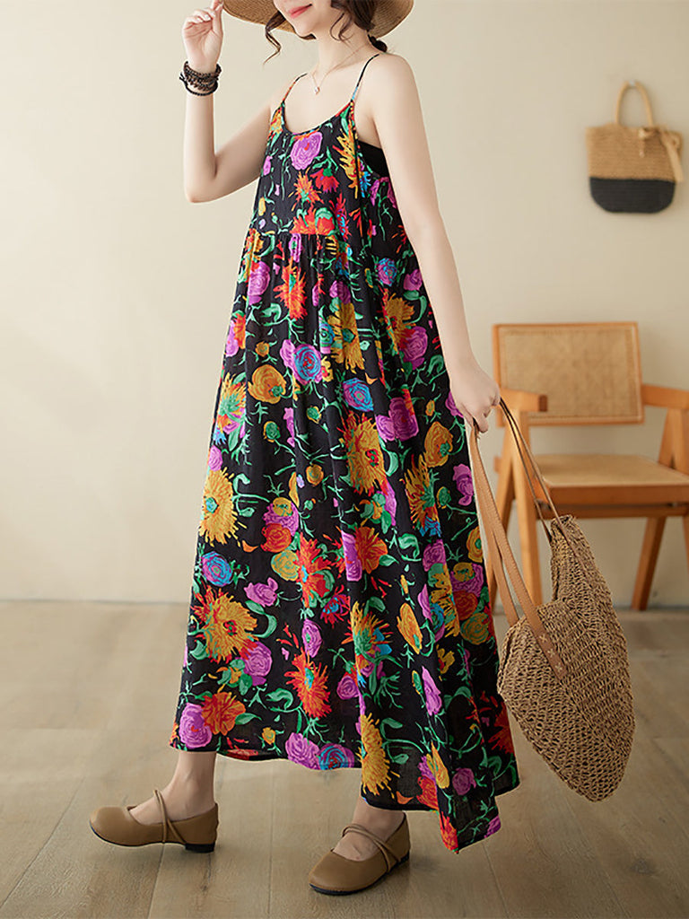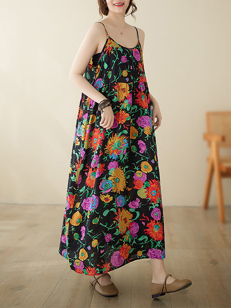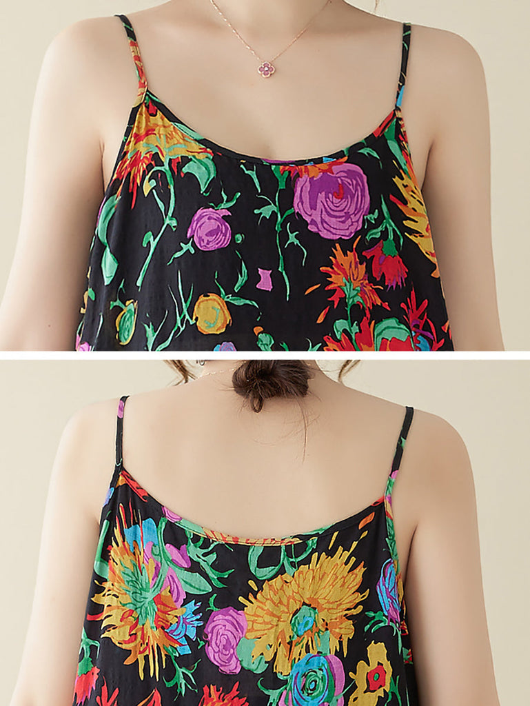 Women Artsy Summer Flower Loose Vest Dress PA1020