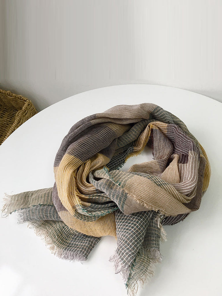Women Artsy Summer Plaid Tassel Thin Scarf KL1046