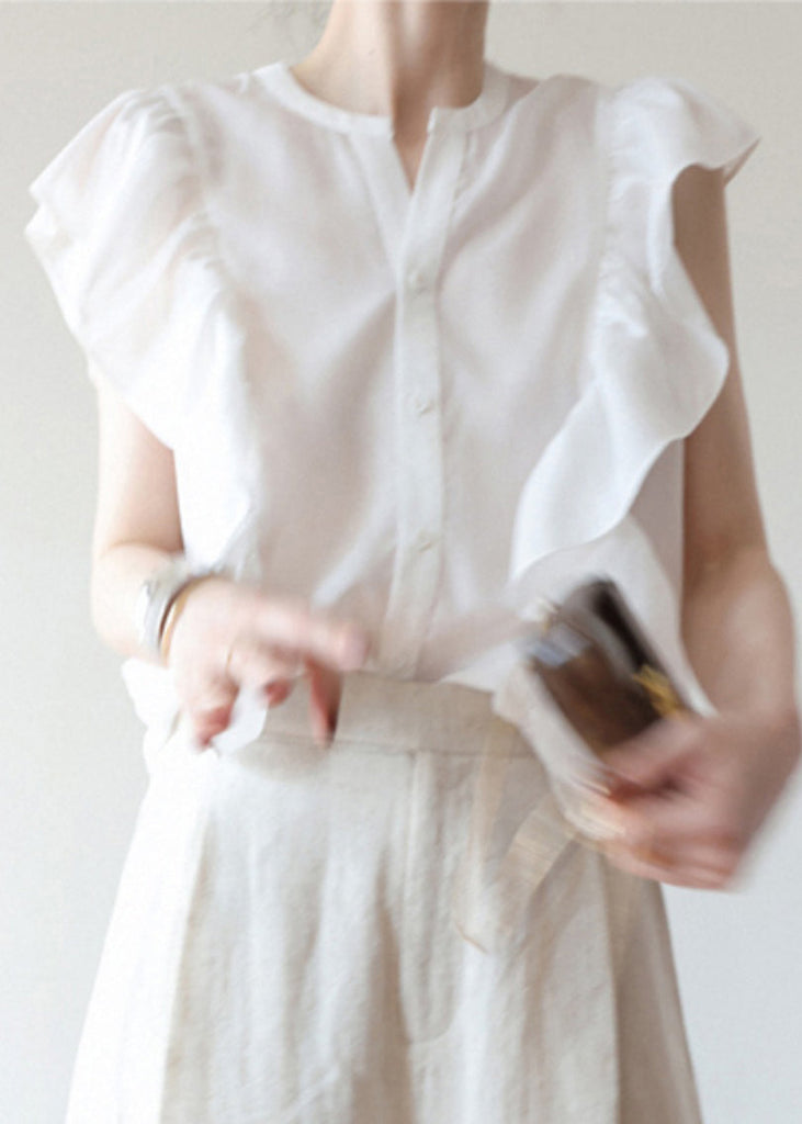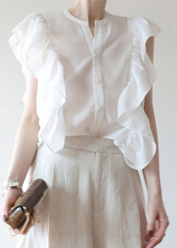 Women Black Ruffled Solid Button Silk Vest Sleeveless AB1029