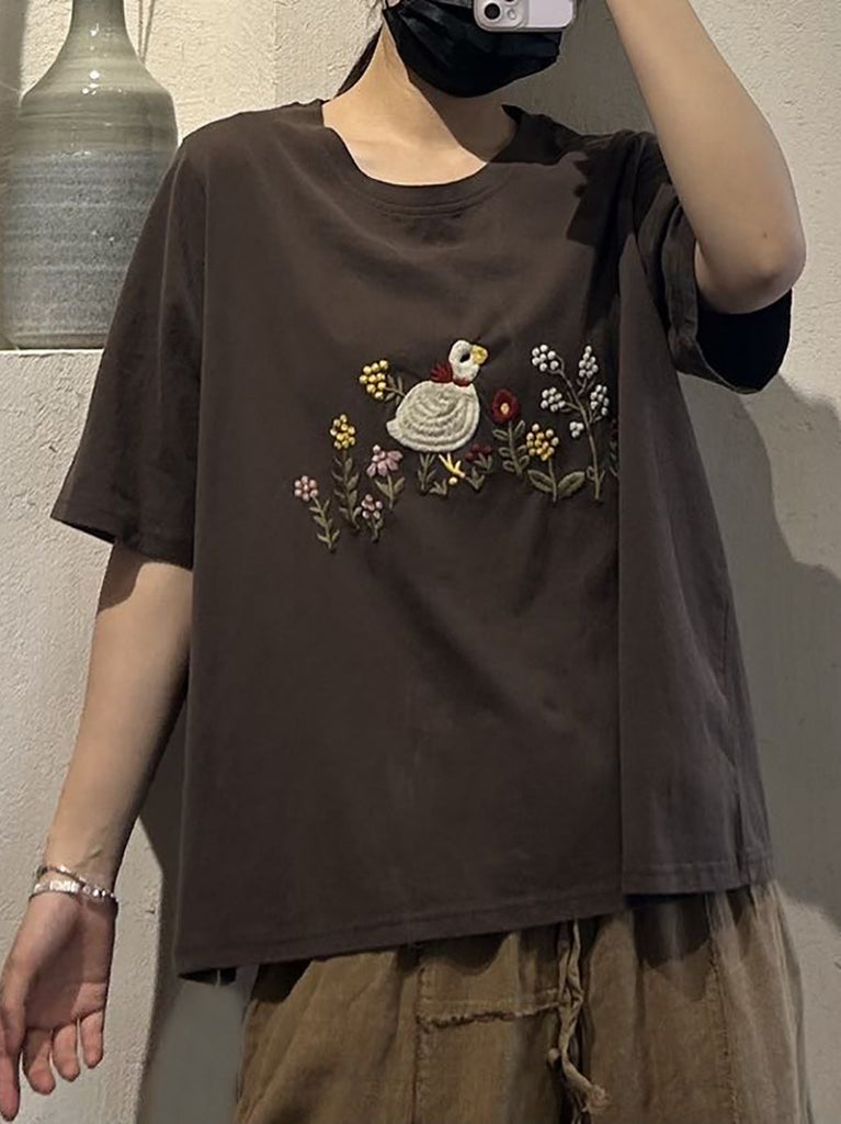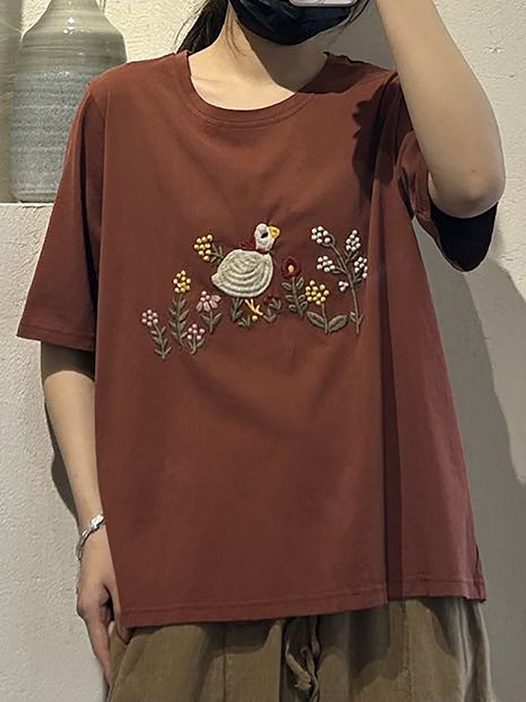 The Women Casual Cute Embroidery O-Neck Cotton Shirt UI1008 was built with people like you in mind. Something to keep you happy. Every. Single. Day.