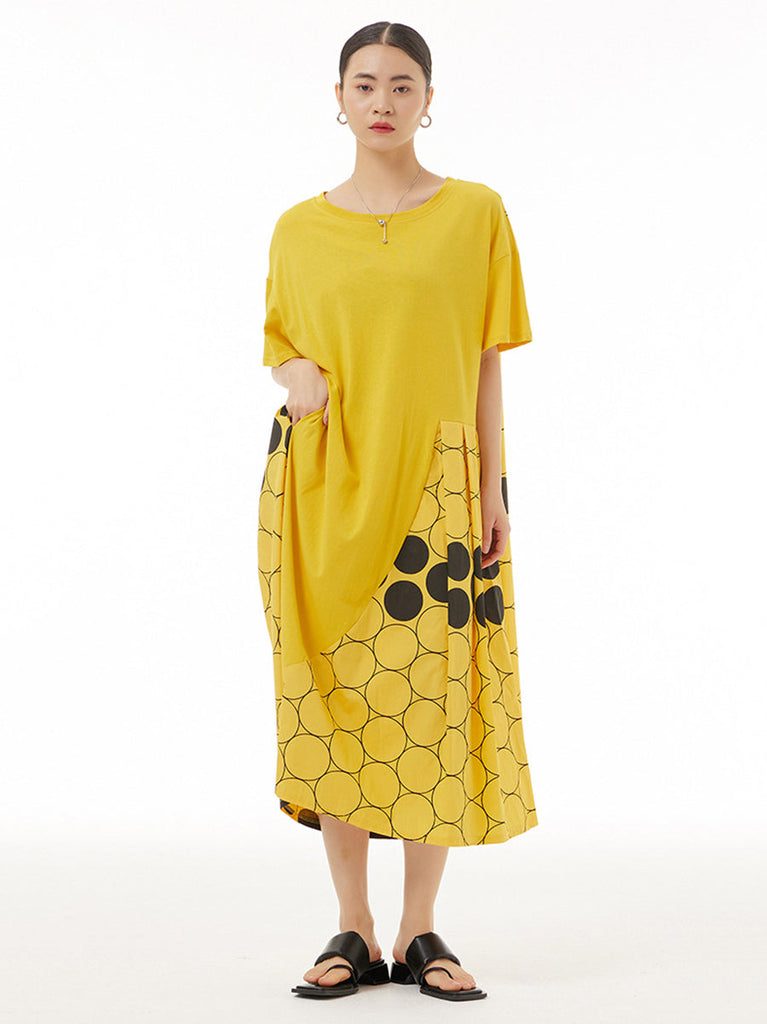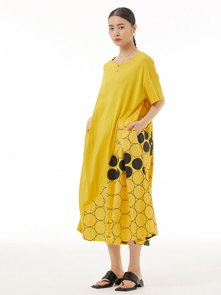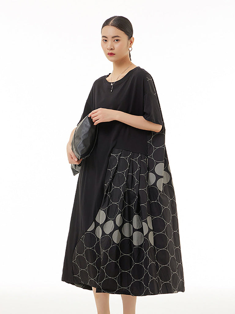 Women Casual Dot Spliced Summer Loose Dress KL1001
