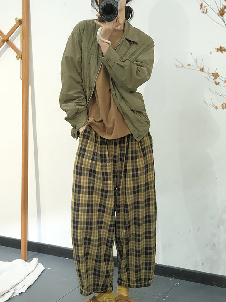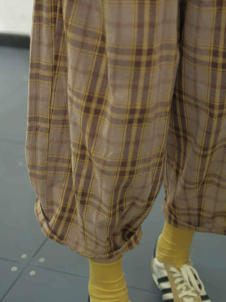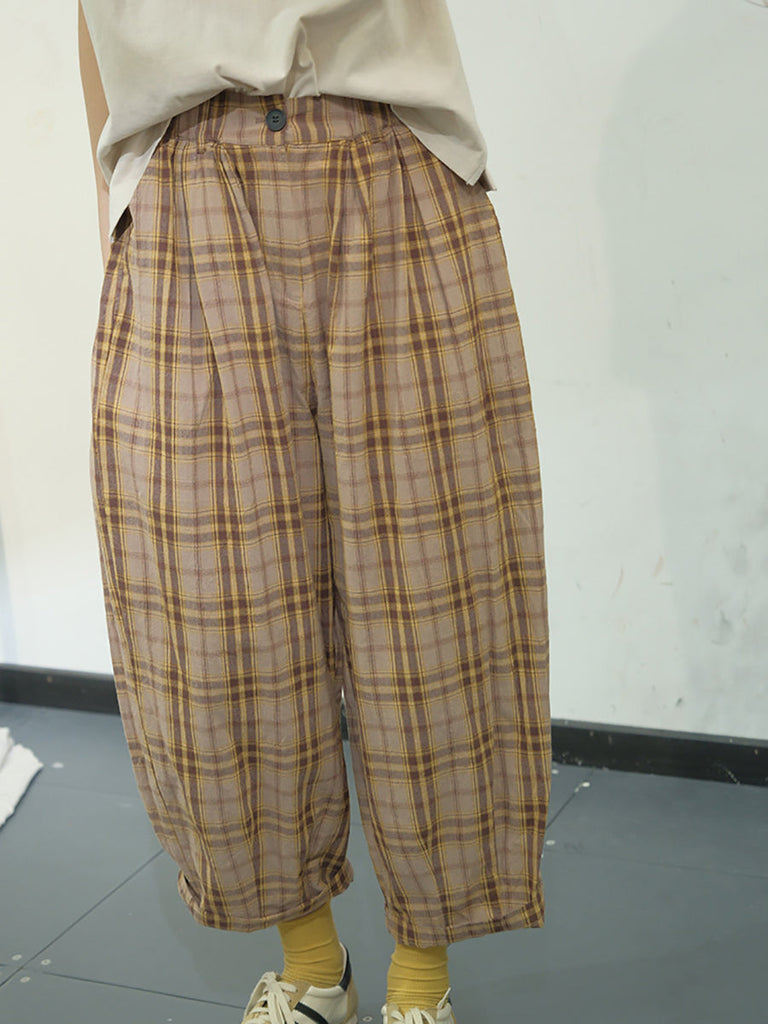 Women Casual Plaid Summer Cotton Loose Harem Pants KL1049