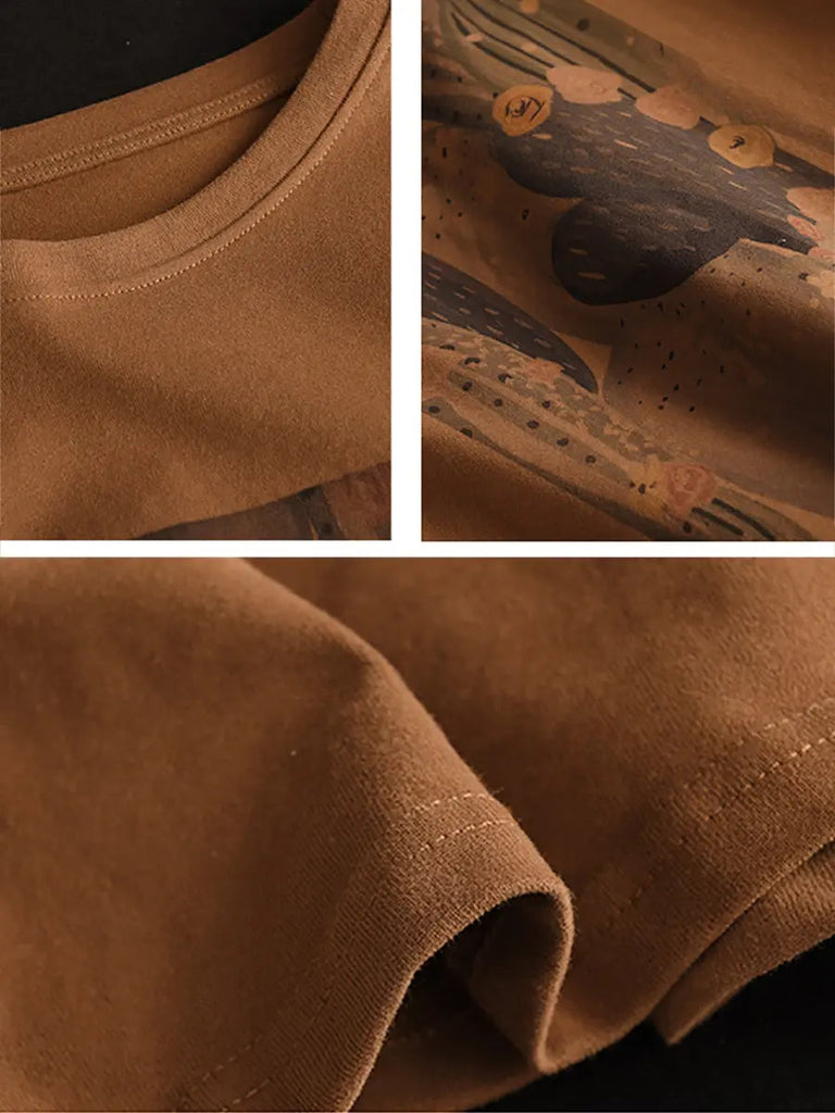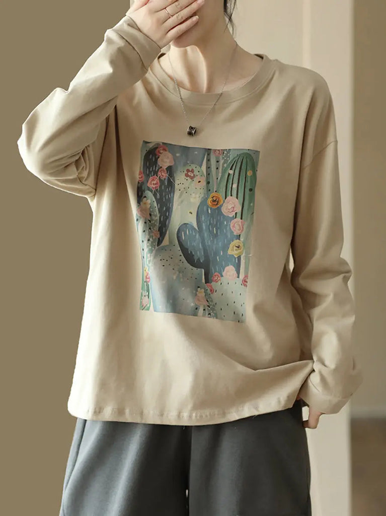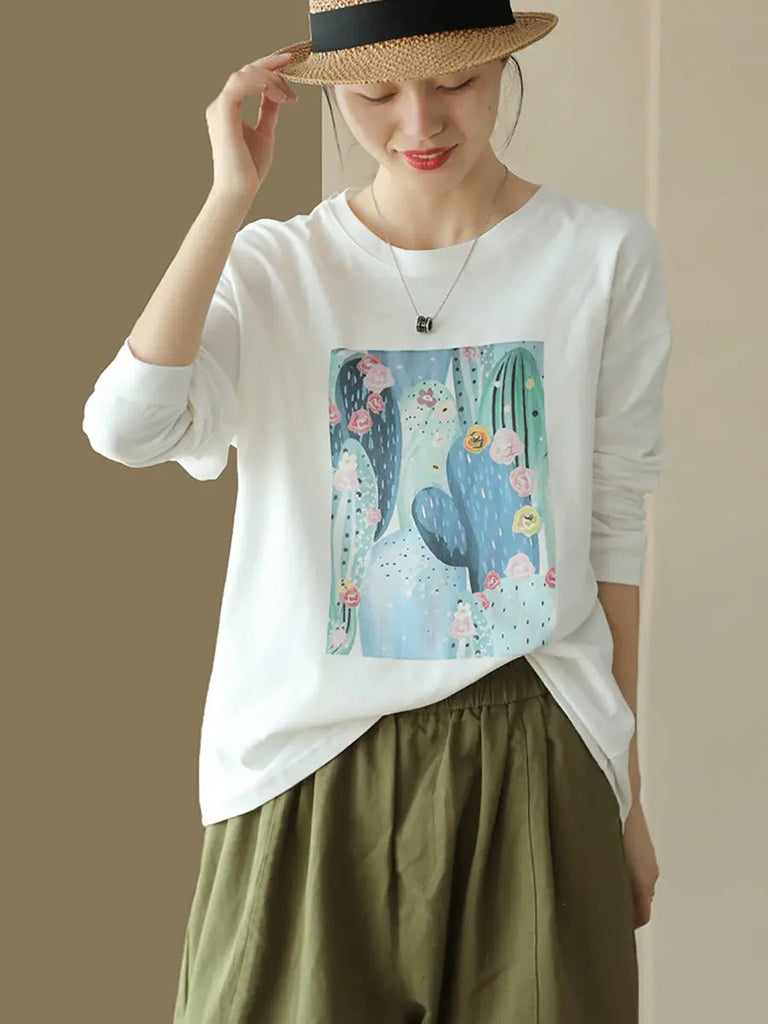 This product is made of 100% cotton and features a floral pattern. The shirt has an O-neck collar and full raglan sleeves, making it perfect for casual wear during the spring and summer seasons.