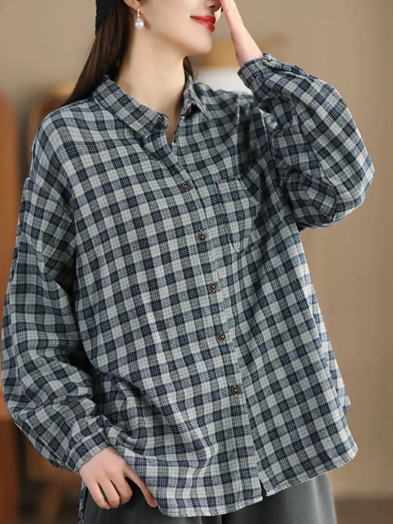 Women Cotton Plaid Shirt