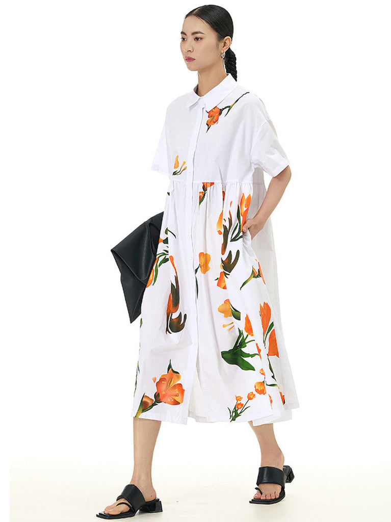 Women Casual Summer Flower Loose Cotton Dress XX1041