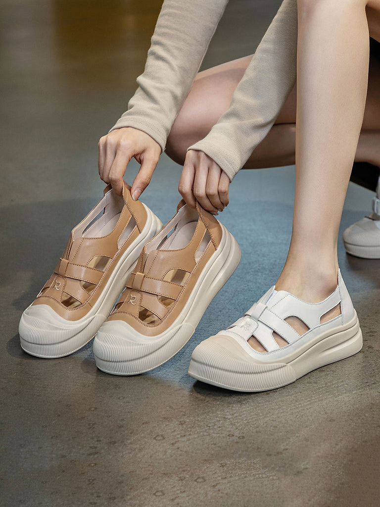 Women Casual Summer Leather Spliced Cutout Shoes UI1020
