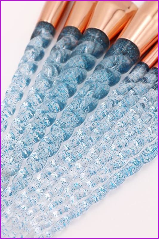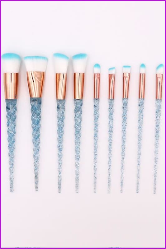 10pcs Blue Unicorn Makeup Brushes Set F322